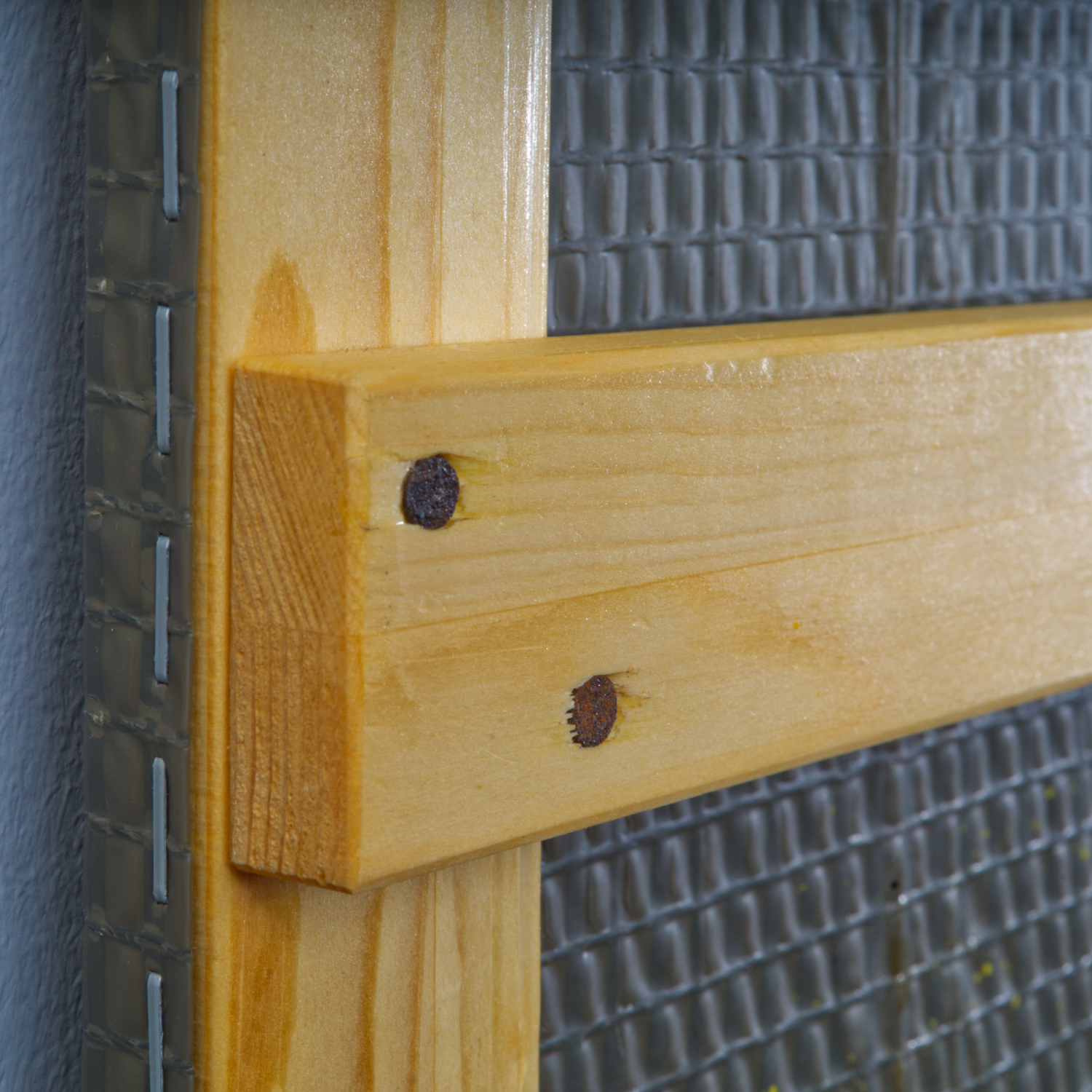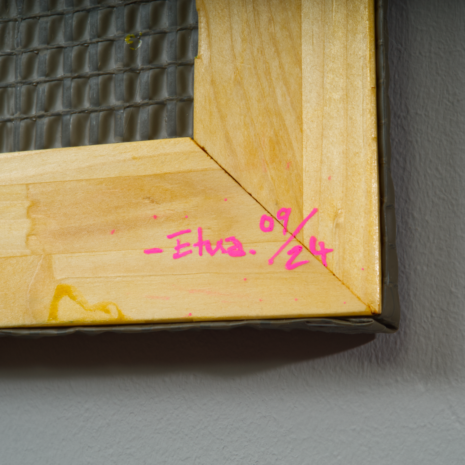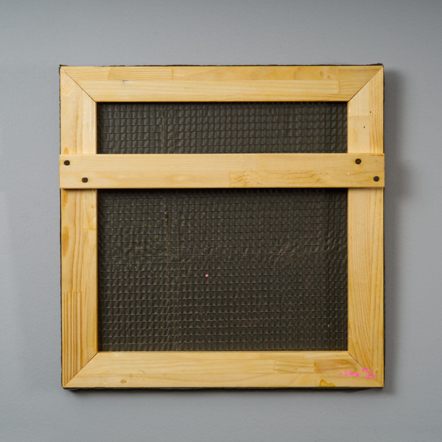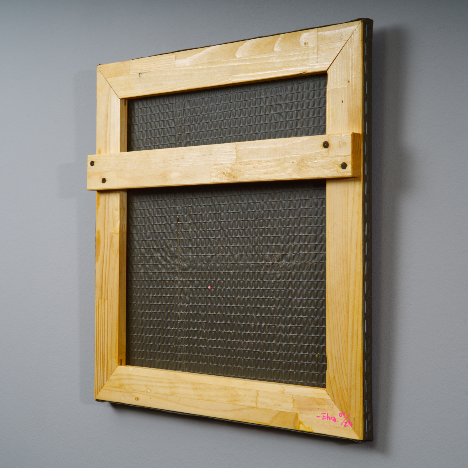 Sprühlack auf genutzter Militärplane, Holz, Nägel