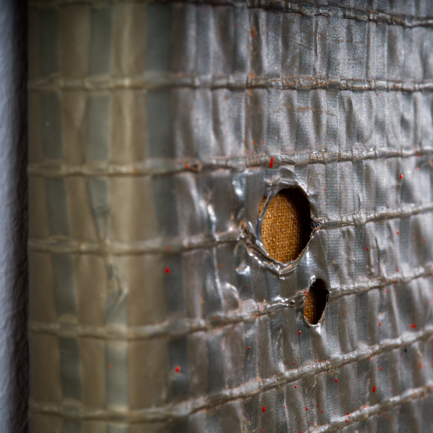 Sprühlack auf genutzter Militärplane, Jute, Papier