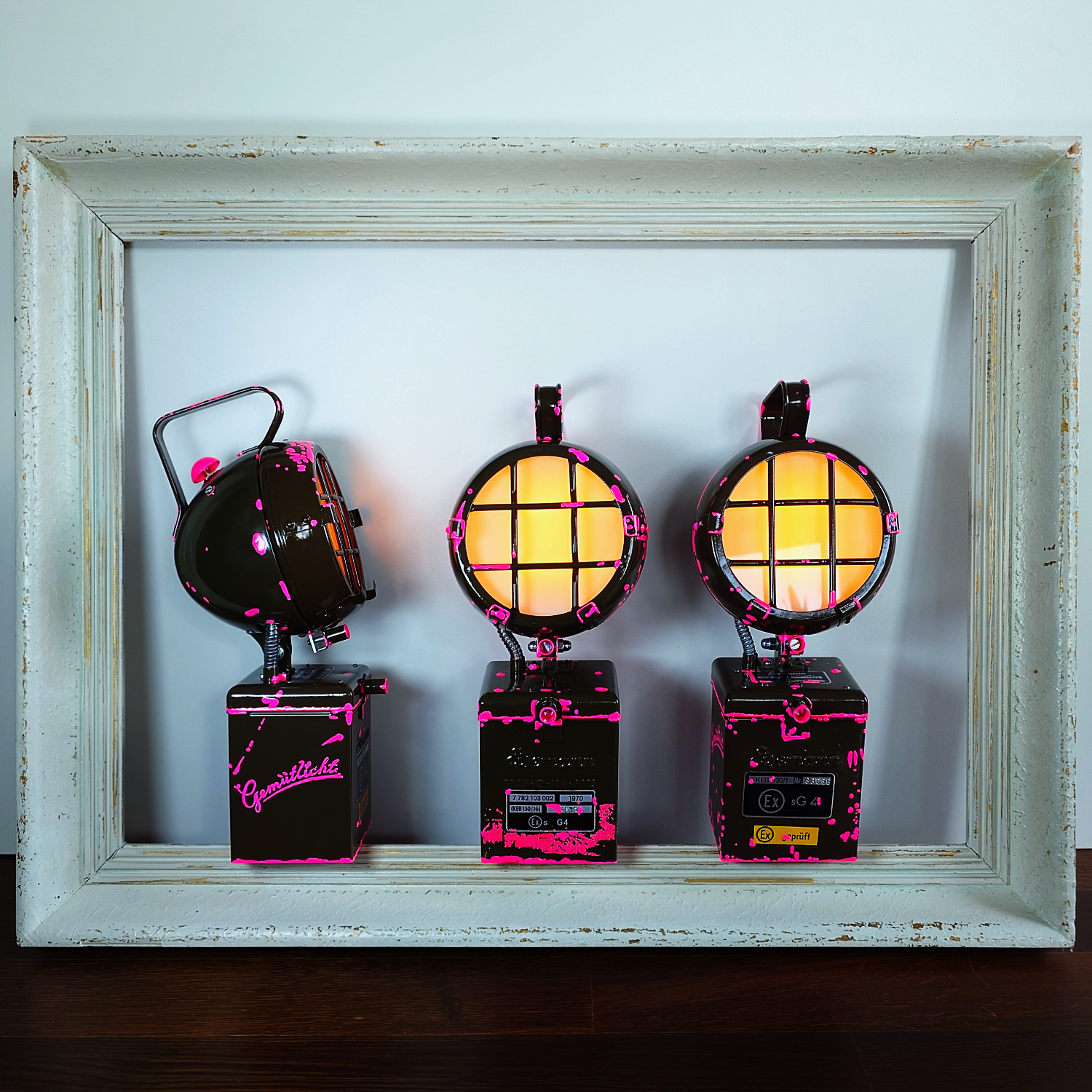 Gemütlicht ist ein Upcycling-Kunstprojekt. Die Hand- und Grubenleuchten aus alten