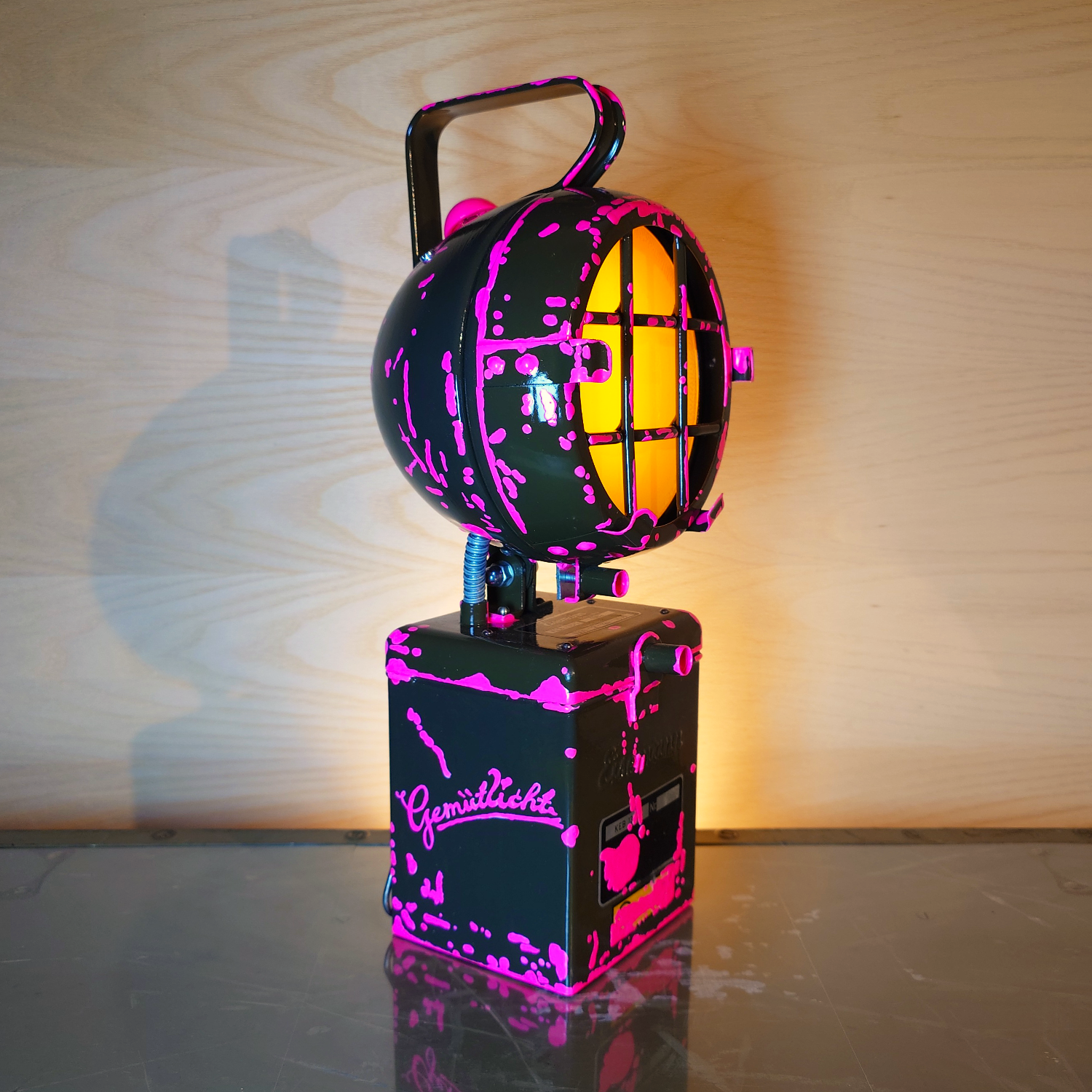 The philosophy behind the lamp on the other hand is much more complex. The Gemutlicht is an upcycling art project. The hand and mine lights from old Bundeswehr stocks are lovingly overhauled in order to return it to the idyll at home: Swords into plowshares.