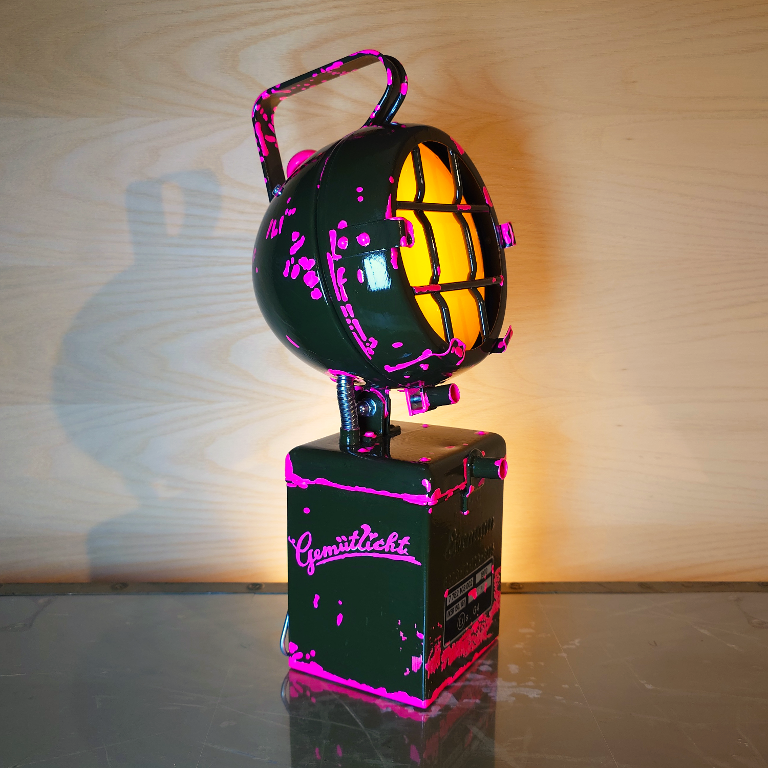 The philosophy behind the lamp on the other hand is much more complex. The Gemutlicht is an upcycling art project. The hand and mine lights from old Bundeswehr stocks are lovingly overhauled in order to return it to the idyll at home: Swords into plowshares.